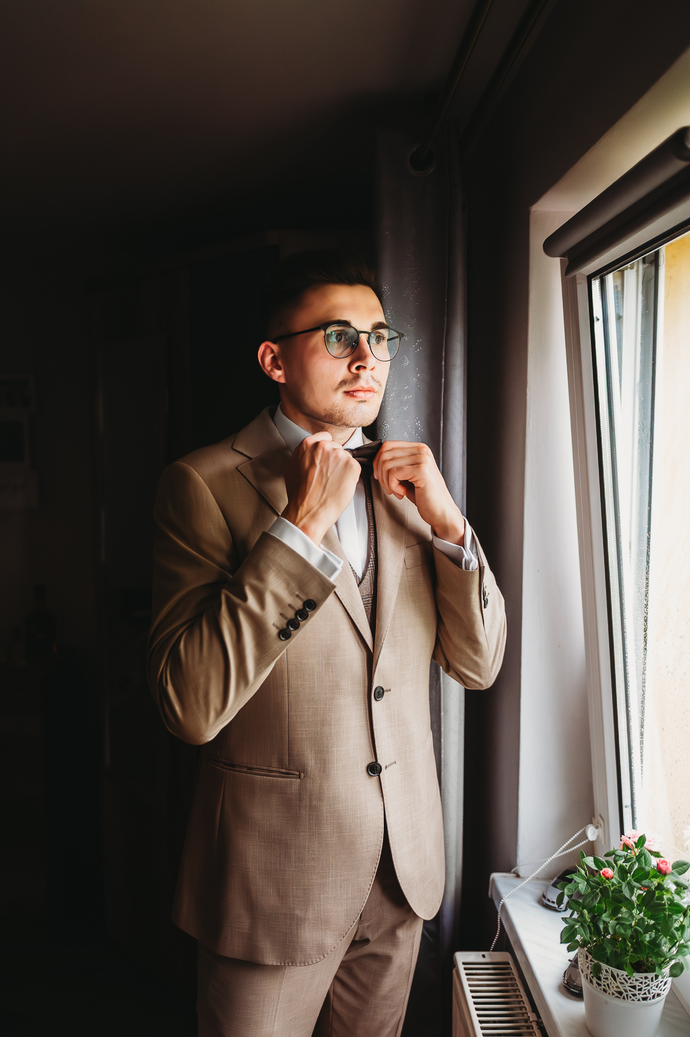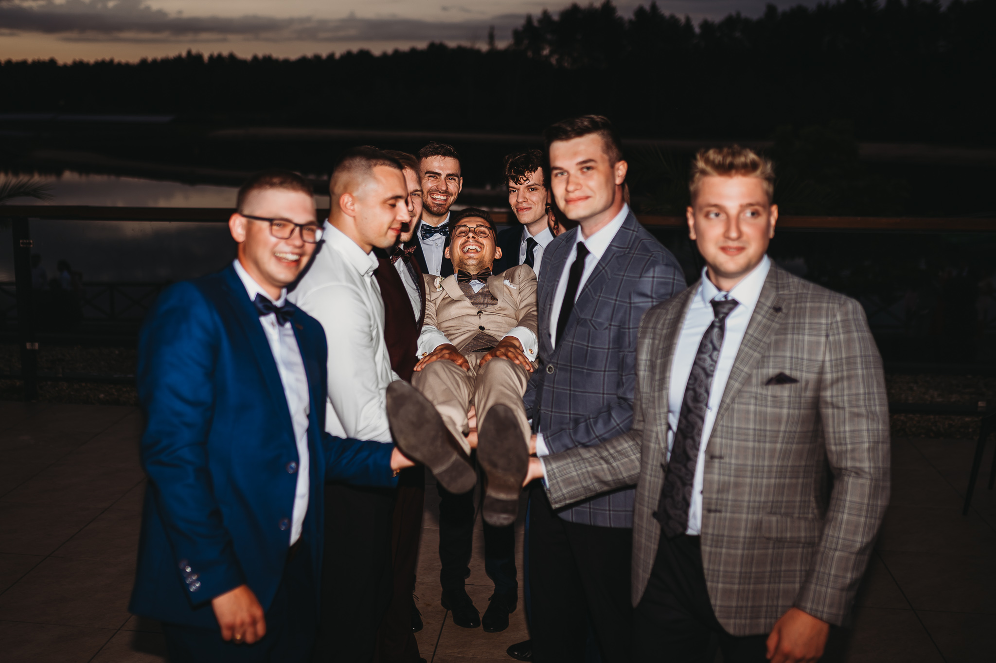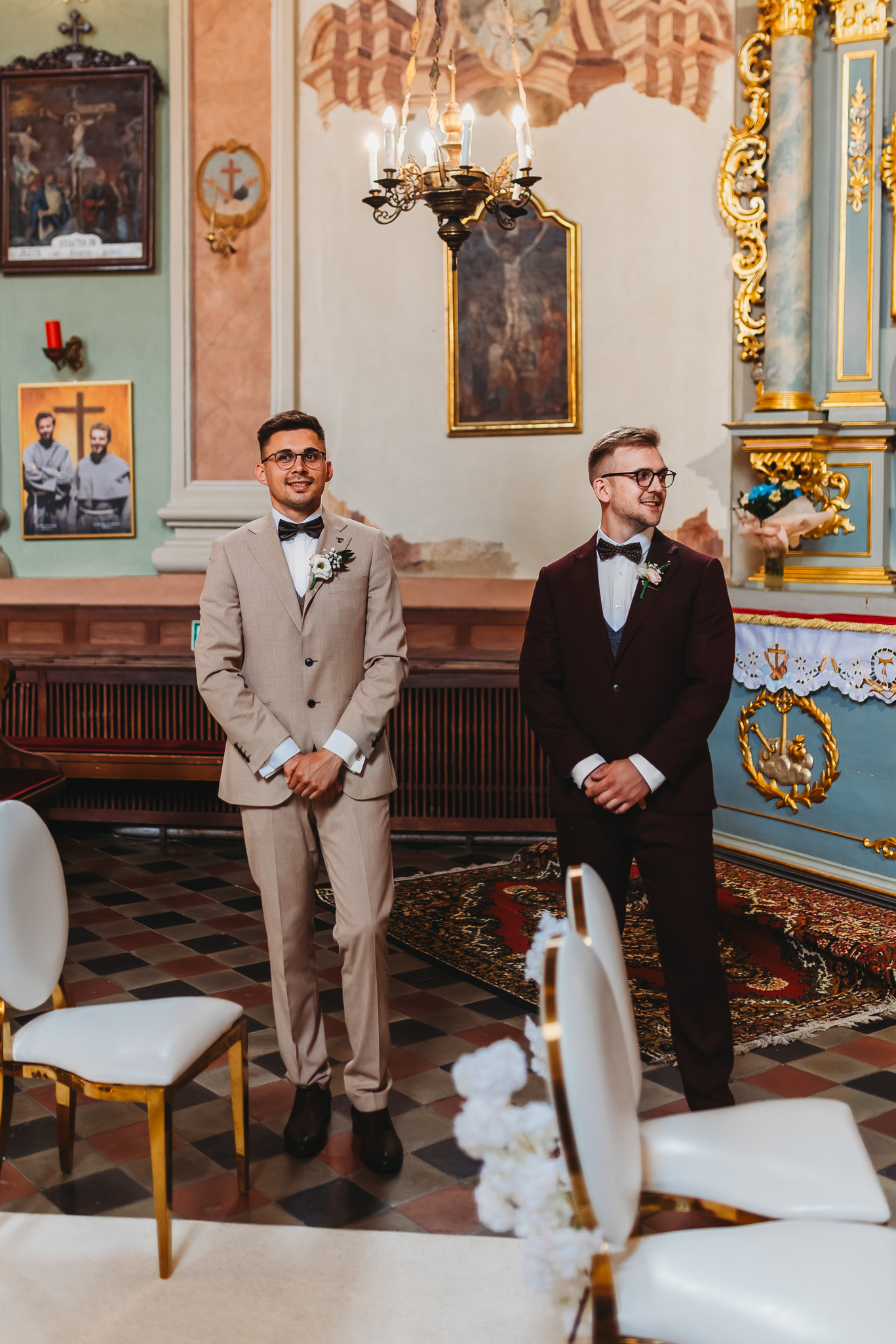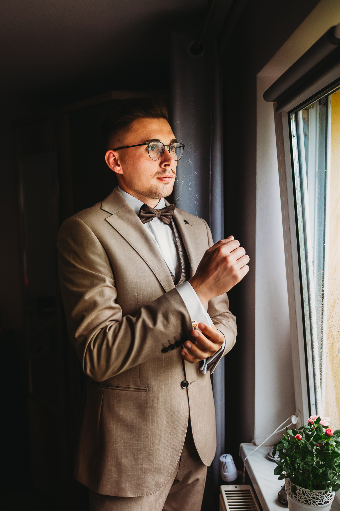 🤵 Rafał rozpoczął dzień w nieco innym klimacie. Jako prawdziwy pasjonat motoryzacji, nie zabrakło rozmów o samochodach, a w towarzystwie najbliższych kolegów znalazł też chwilę na relaks przy kartach i szklaneczce dobrej whisky. Męska energia i spokój idealnie uzupełniły emocjonalne przygotowania Justyny.