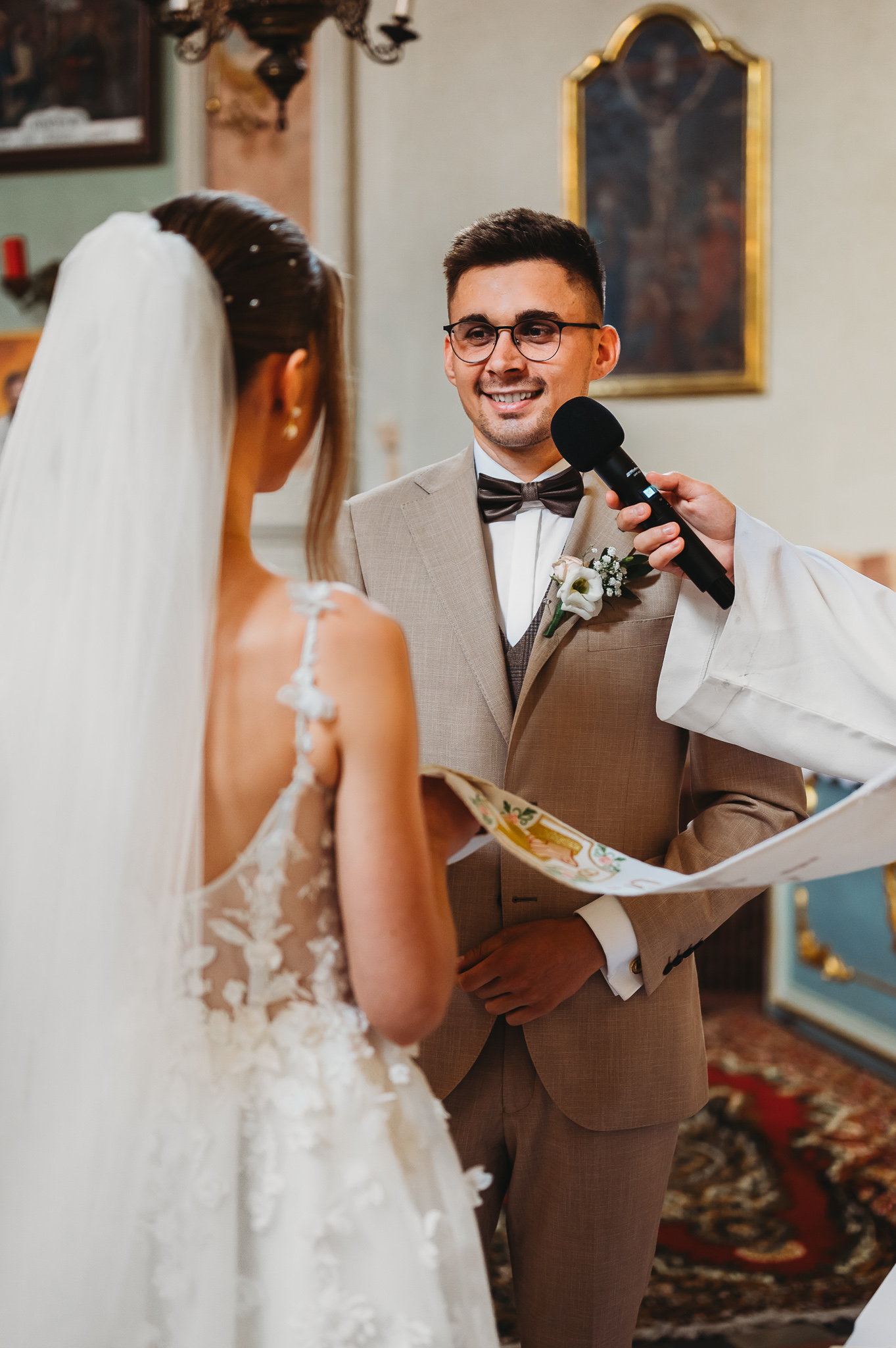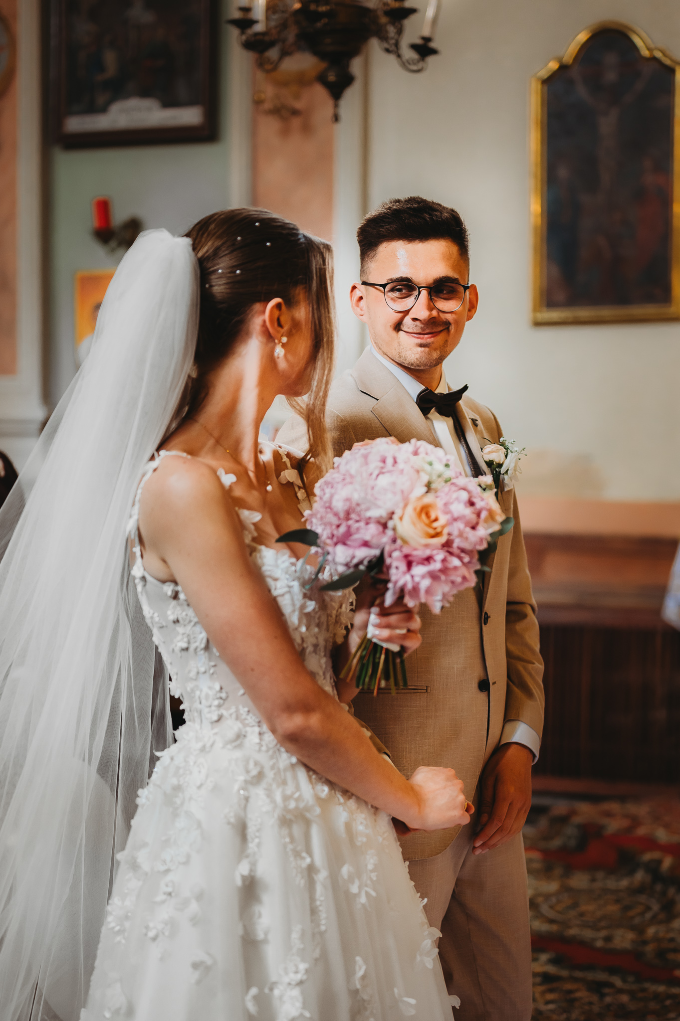 ⛪ Ceremonia ślubna w kościele była pełna emocji – wzruszone spojrzenia, drżące dłonie i słowa przysięgi, które zabrzmiały z głębi serca. Każdy obecny czuł, że to wyjątkowa chwila, w której dwoje ludzi naprawdę staje się jednością.