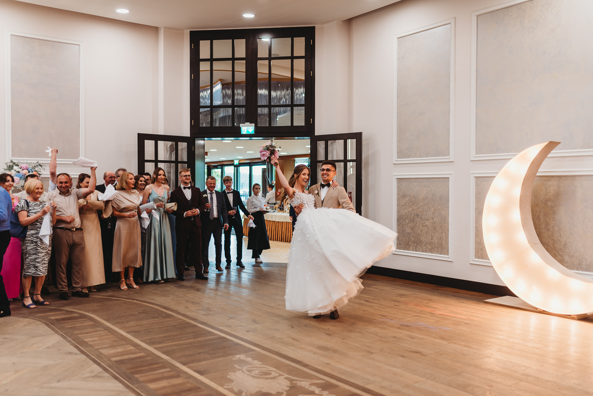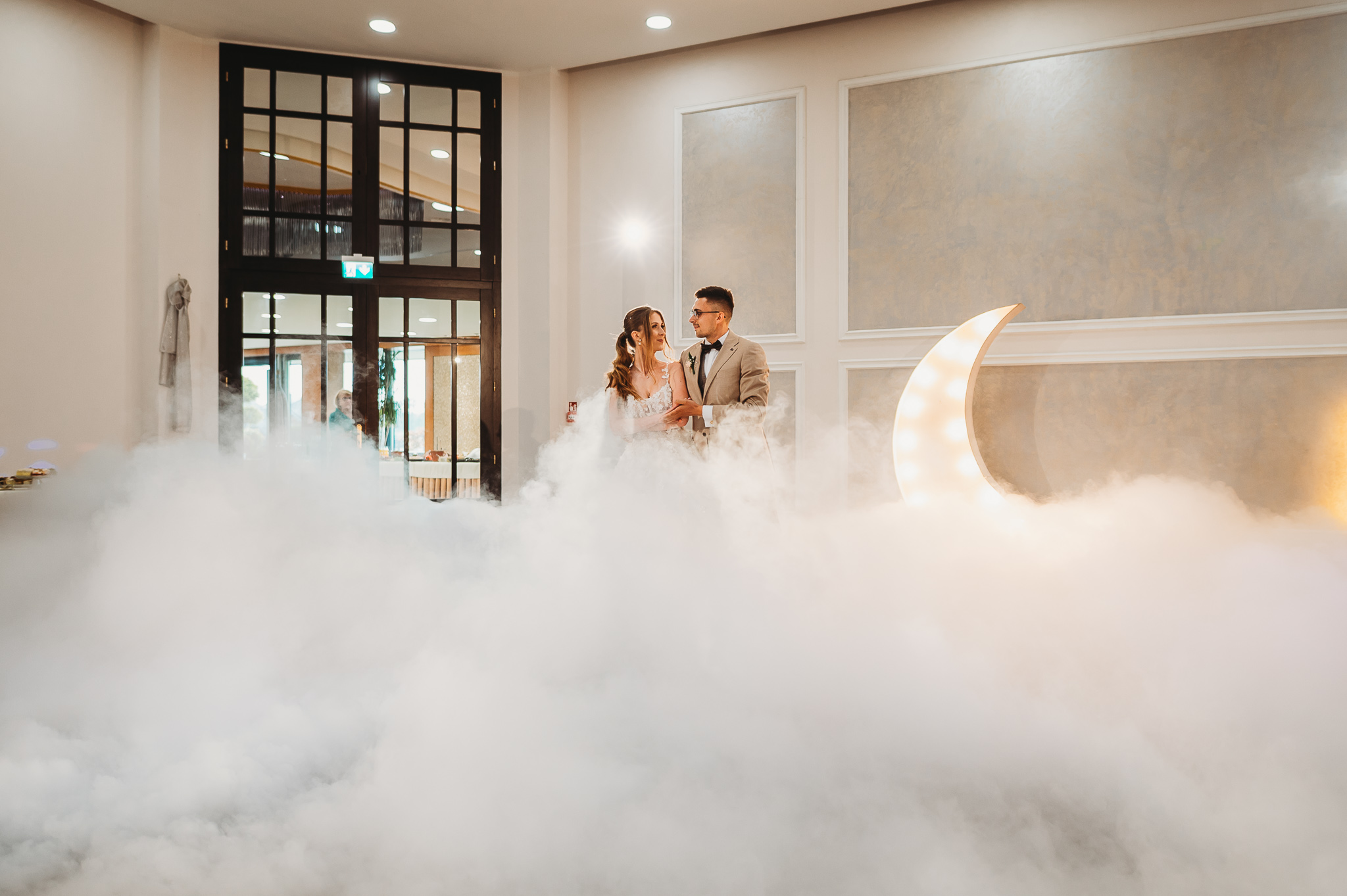 🌅 Po uroczystości i wejściu na salę Dębowy Dwór w Ruda Różaniecka, we włoskim stylu nowożeńcy zatańczyli ze sobą po raz pierwszy. Ich taniec był zachwycający!