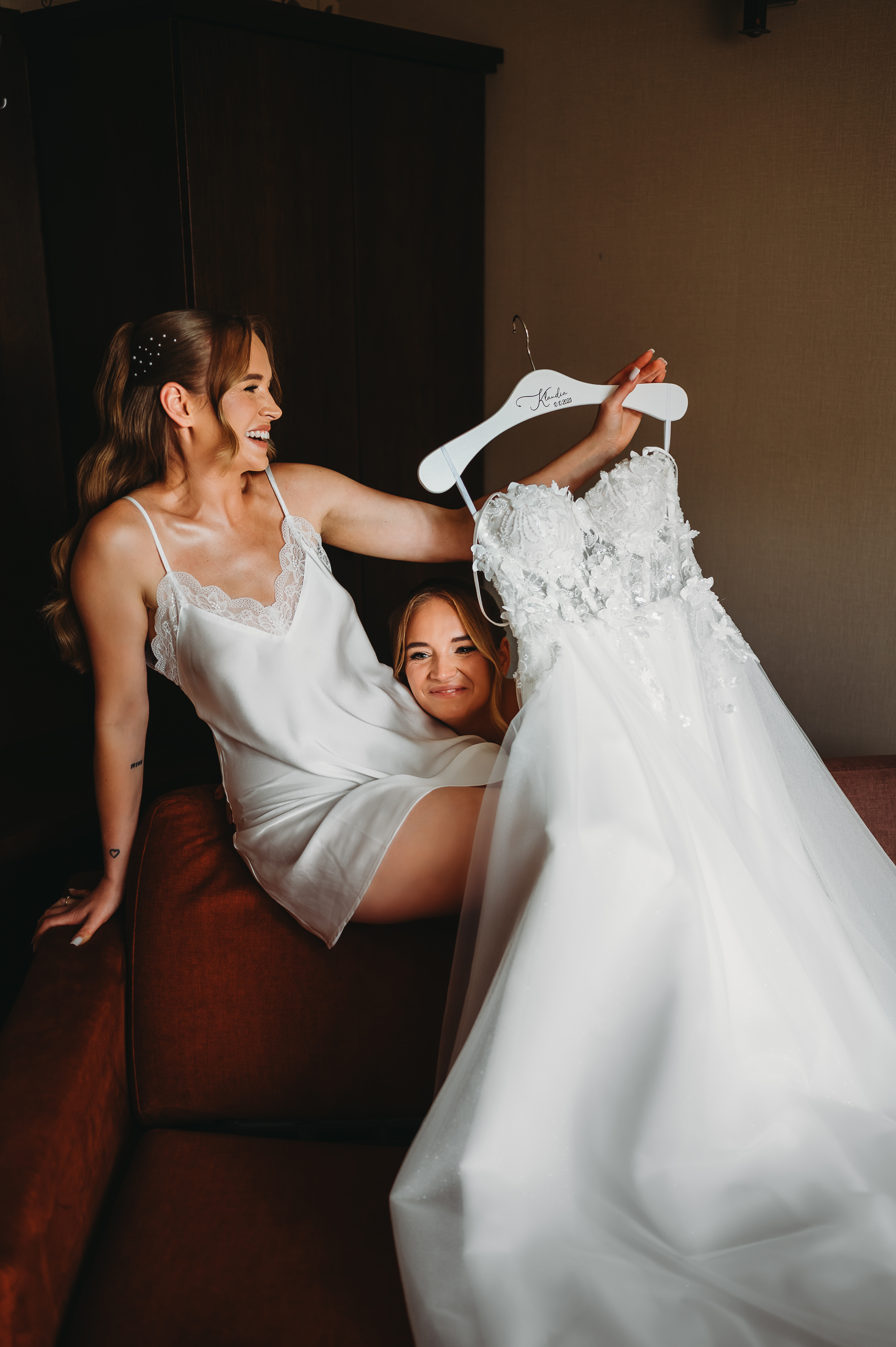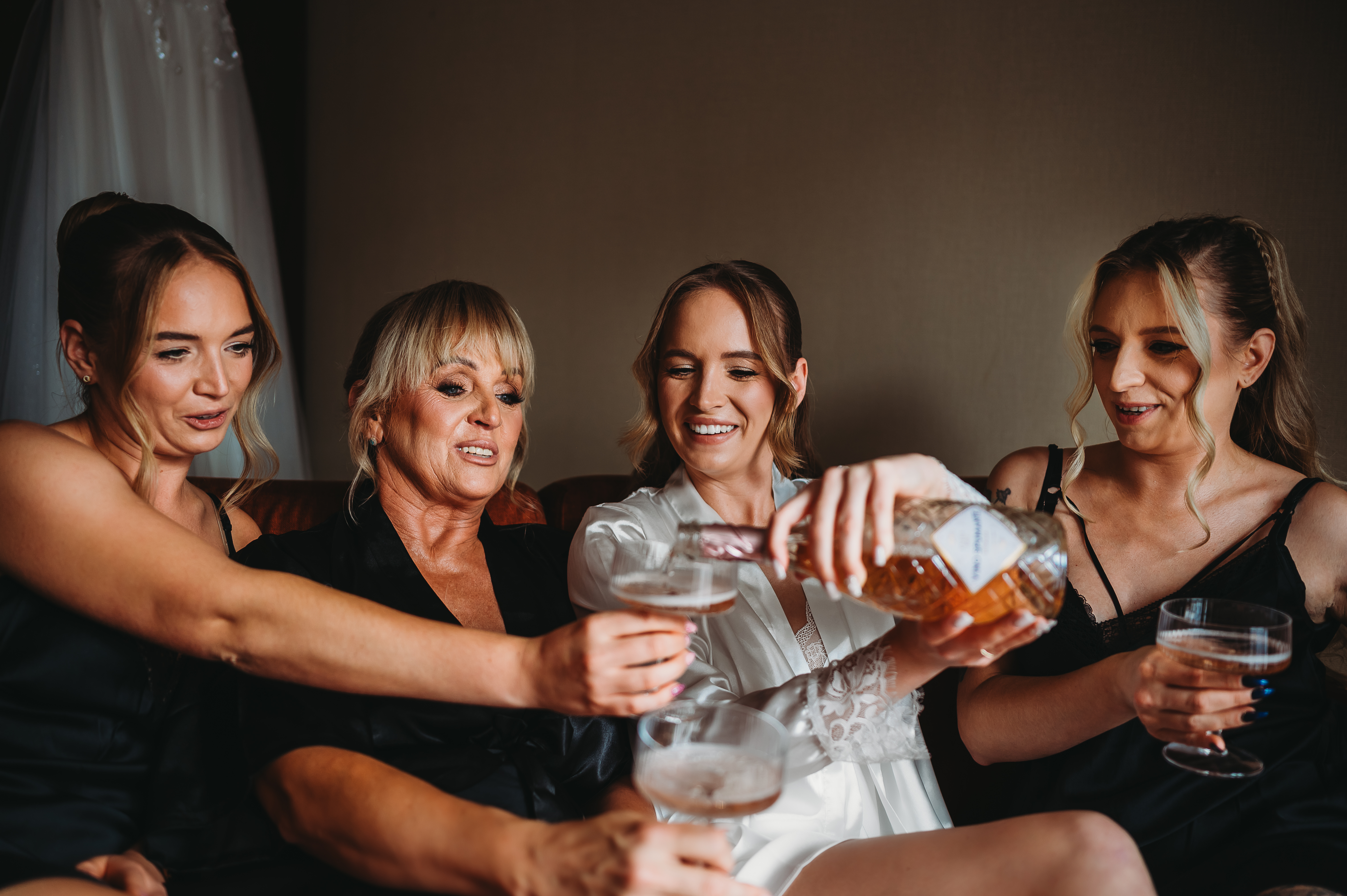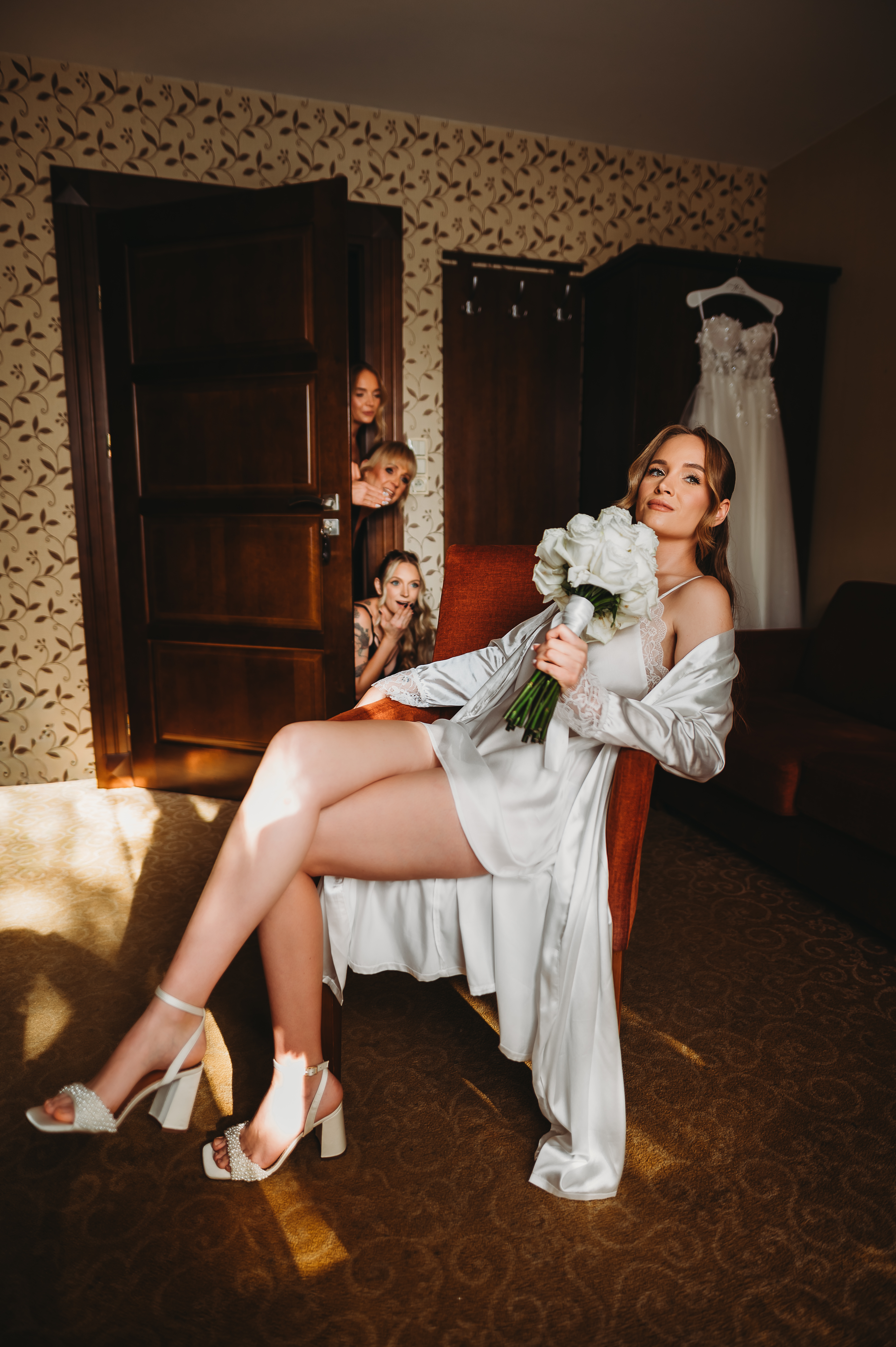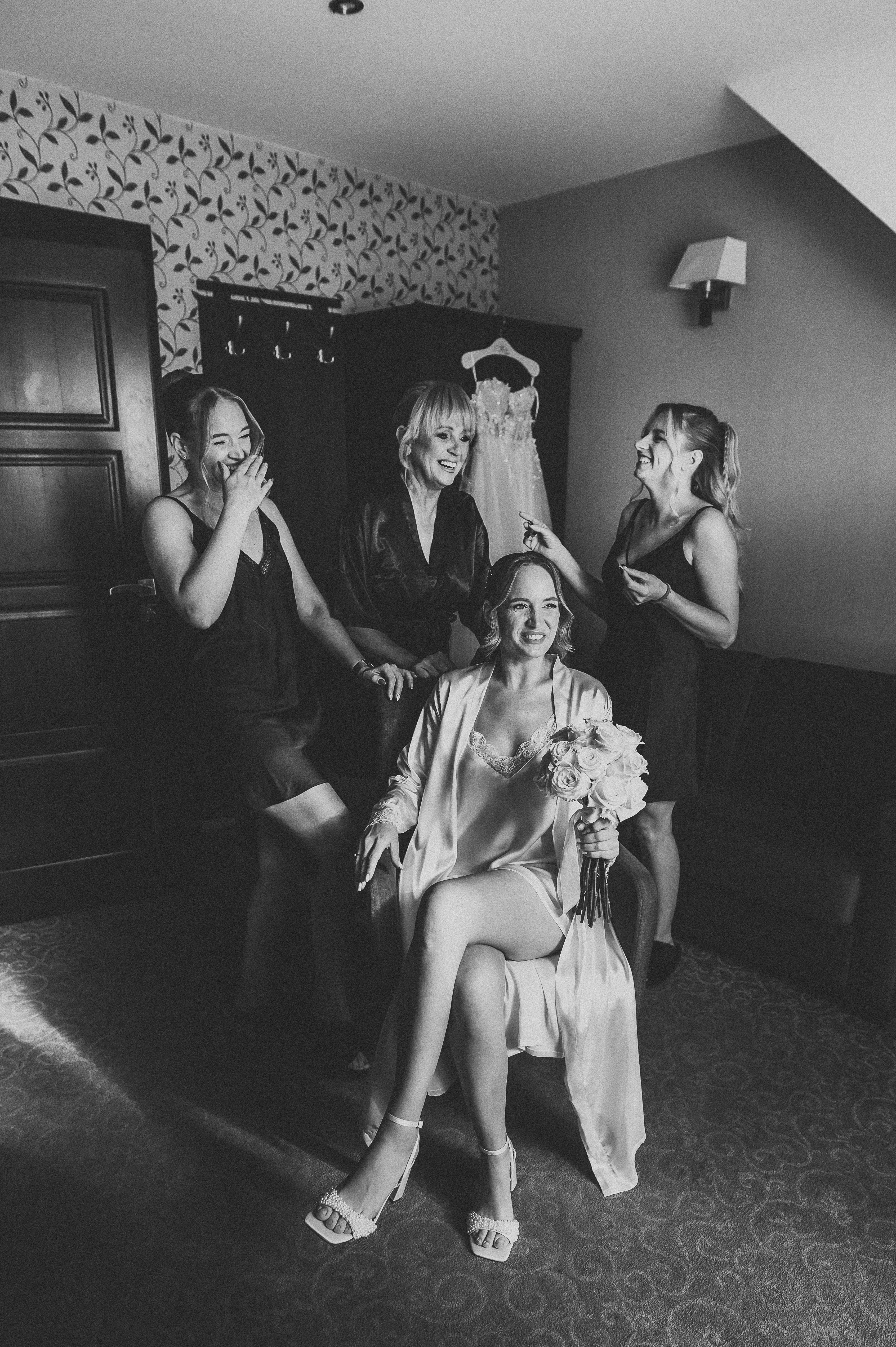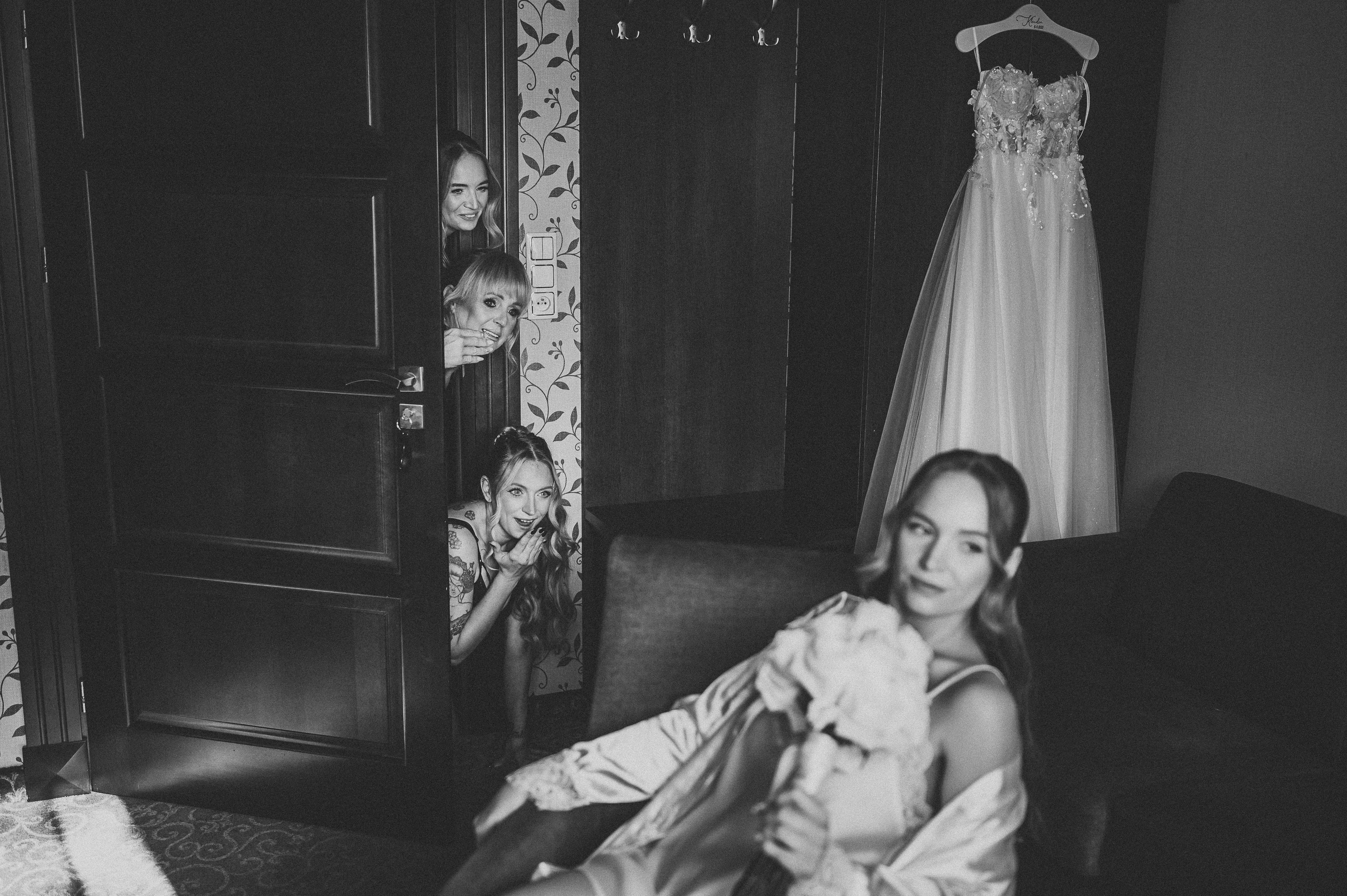 Atmosfera była luźna, radosna, pełna energii. Dziewczyny wyglądały zachwycająco — makijaż, fryzury, szampan w dłoni 🥂 i mnóstwo śmiechu. Były wygłupy, żarty i ta charakterystyczna, kobieca, pozytywna ekscytacja przed wielkim momentem.
