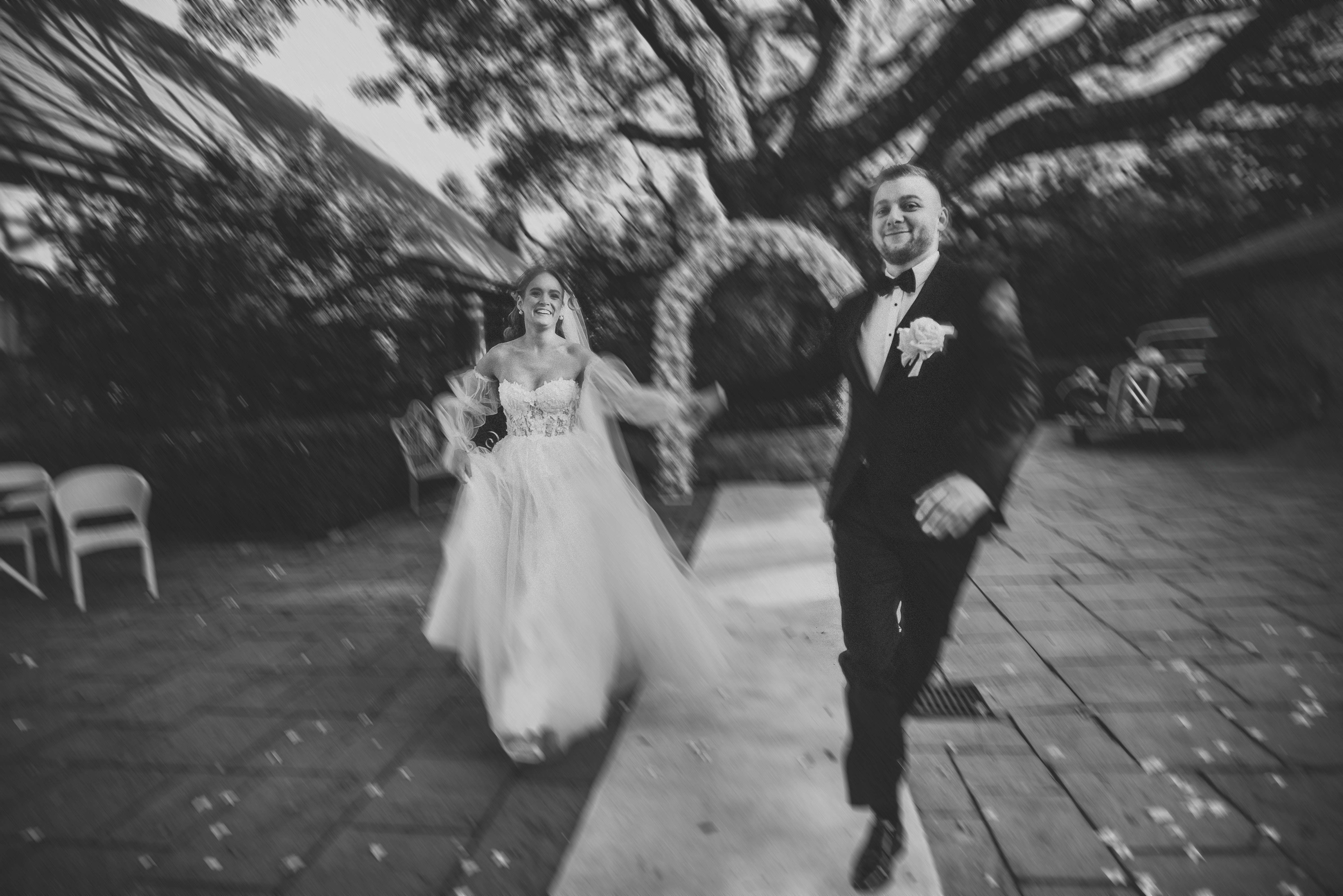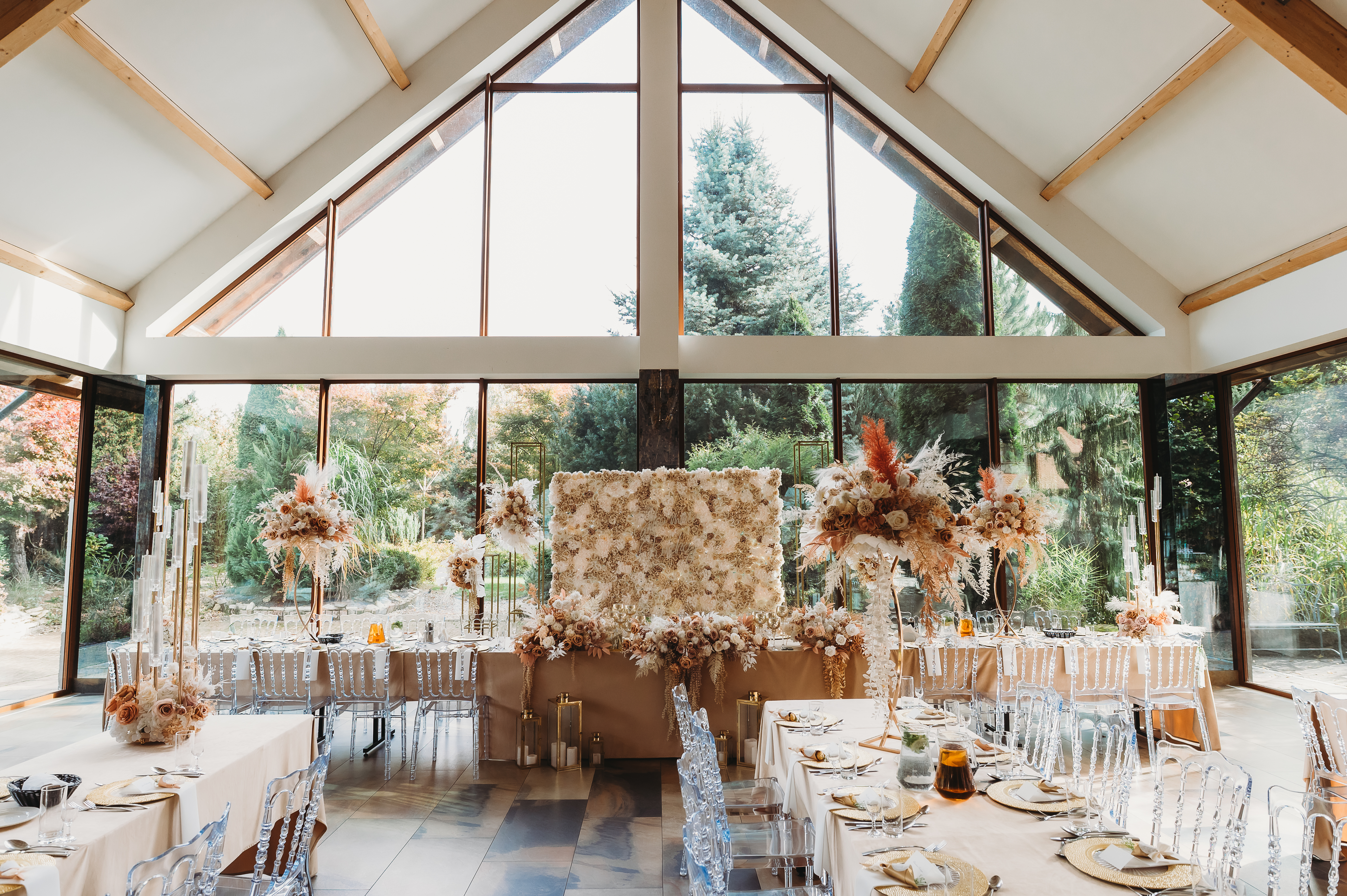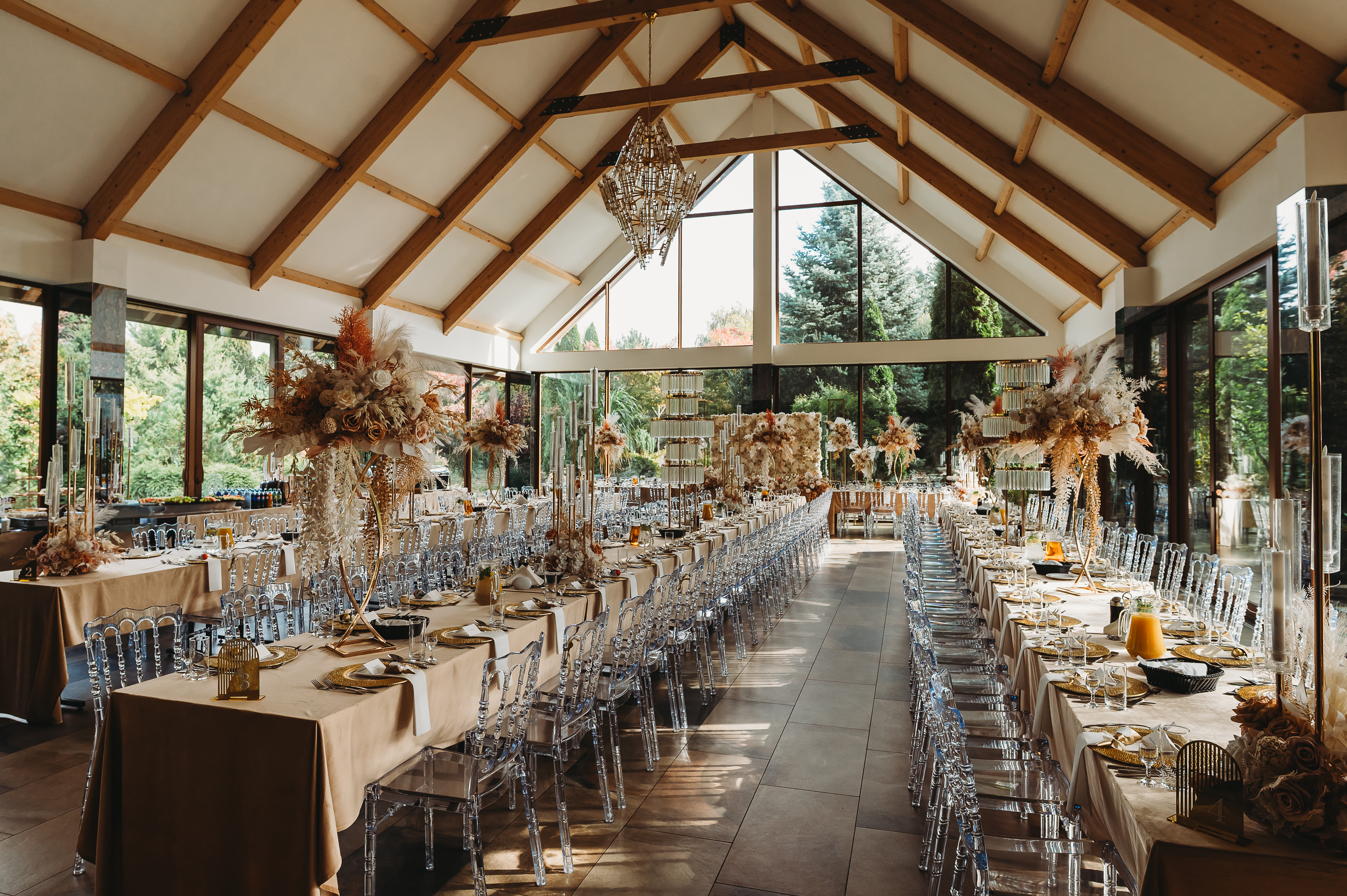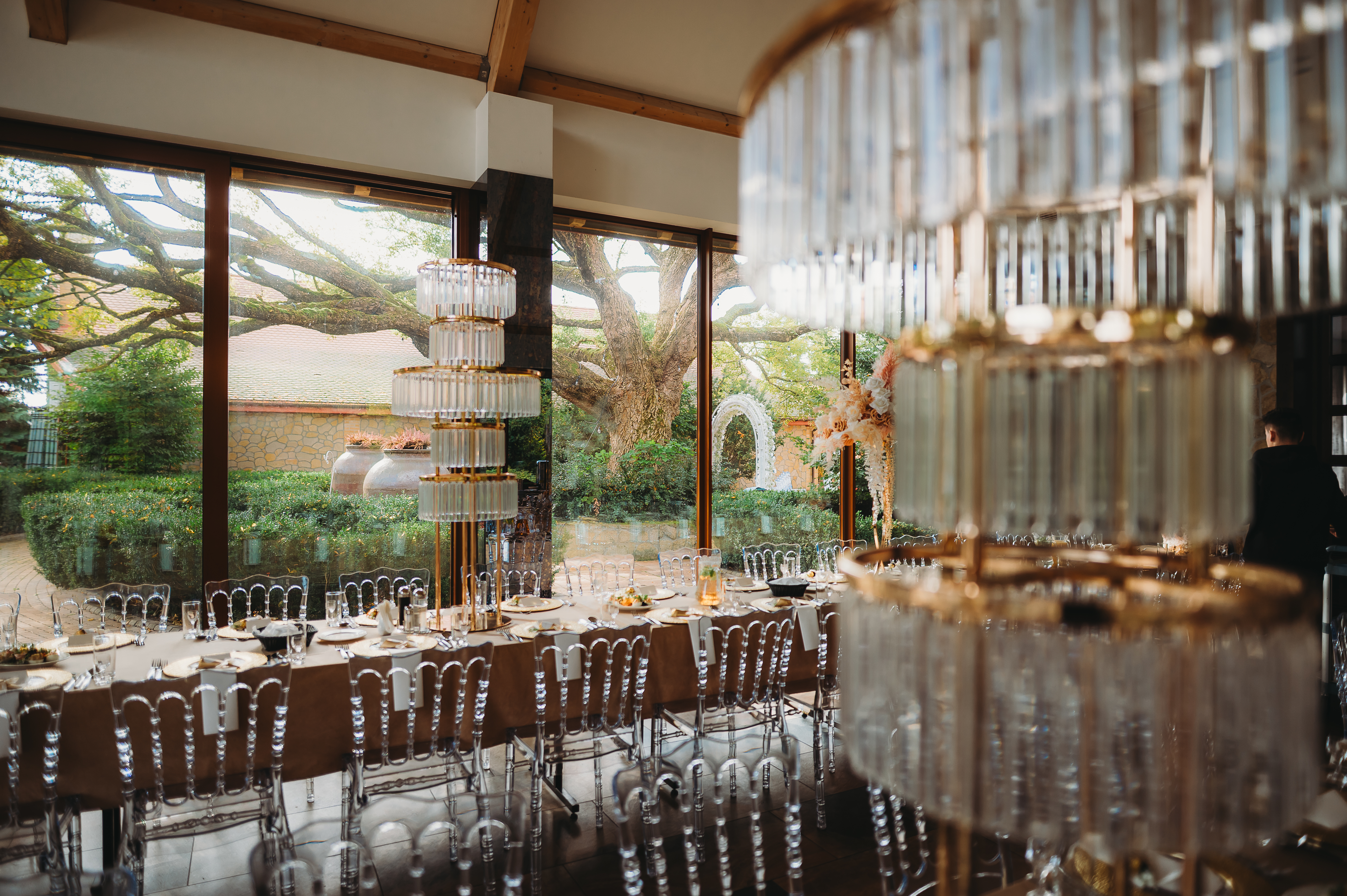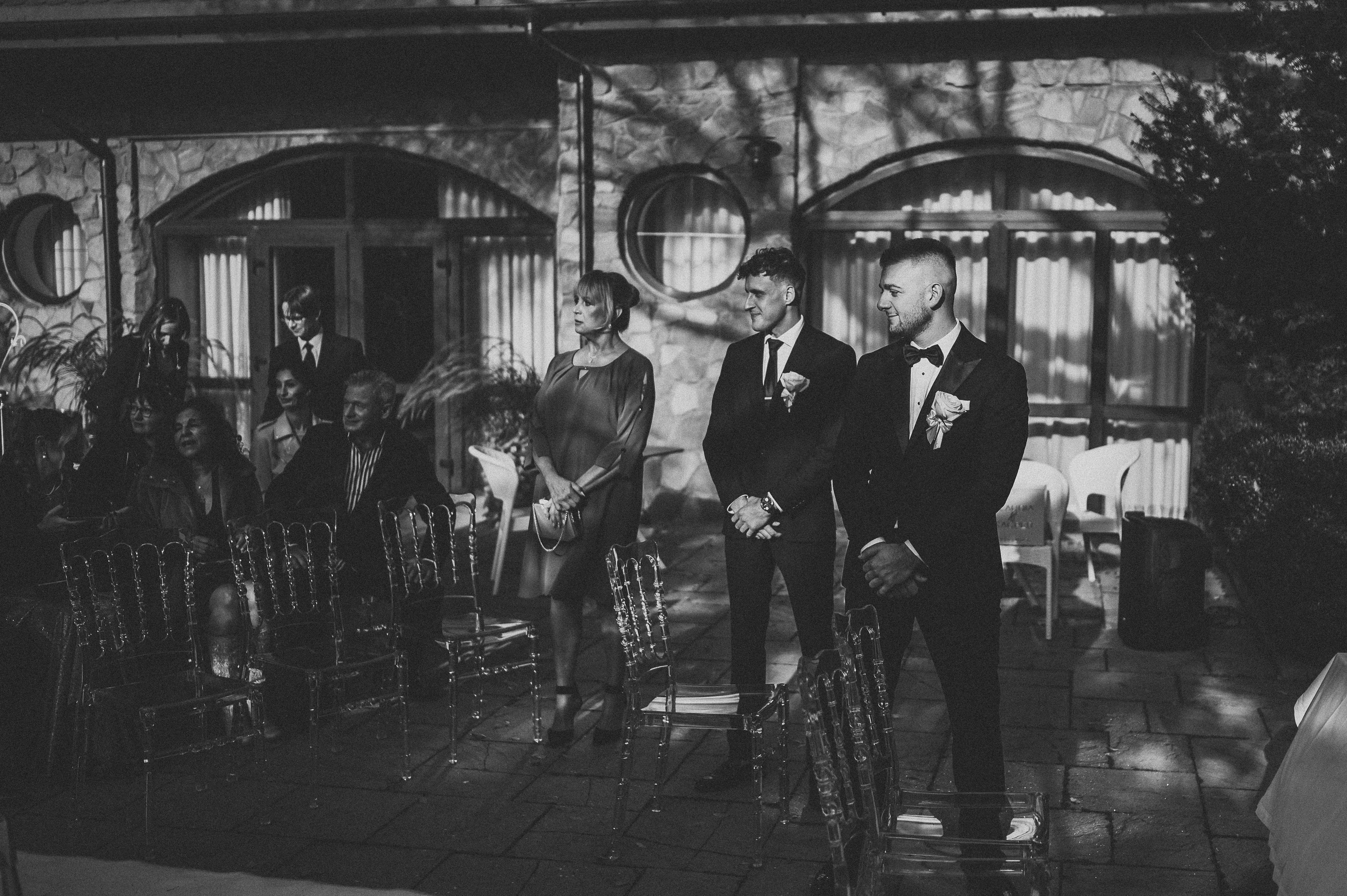 Dekoracje na zewnątrz tworzyły nastrojowy klimat, idealnie współgrający z naturą. Centralnym punktem był ogromny, rozłożysty dąb 🌳, który stał się niemym świadkiem przysięgi Klaudii i Kacpra. To właśnie pod nim zakochani powiedzieli sobie małżeńskie „tak”.