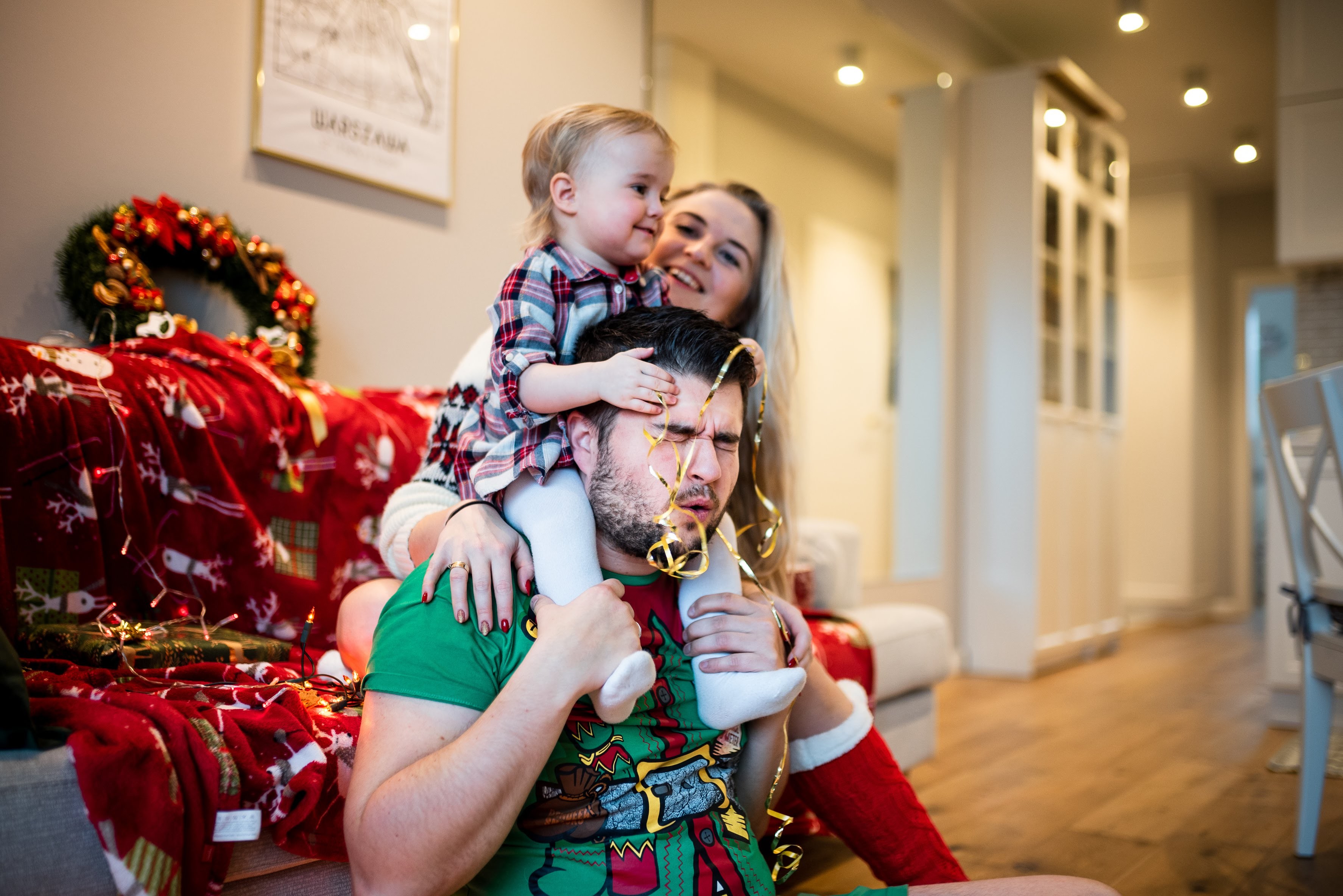 Z tego powodu zawsze wszystkich serdecznie namawiamy do wykonywania sesji świątecznych w swoich własnych domach czy mieszkaniach. Po pierwsze fotografie pokażą wtedy Wasze święta, nie przygotowanego w studio fotograficznym gotowca; po drugie oszczędzacie czas – to my przyjeżdżamy do Was w konkretnie umówionym dniu na konkretną godzinę; po trzecie – i najważniejsze – w przypadku sesji rodzinnych, dzieciaki z reguły czują się najlepiej i najbardziej swobodnie u siebie, w miejscu które dobrze znają, a to przekłada się bezpośrednio na zachowanie i emocje rodziców 😊